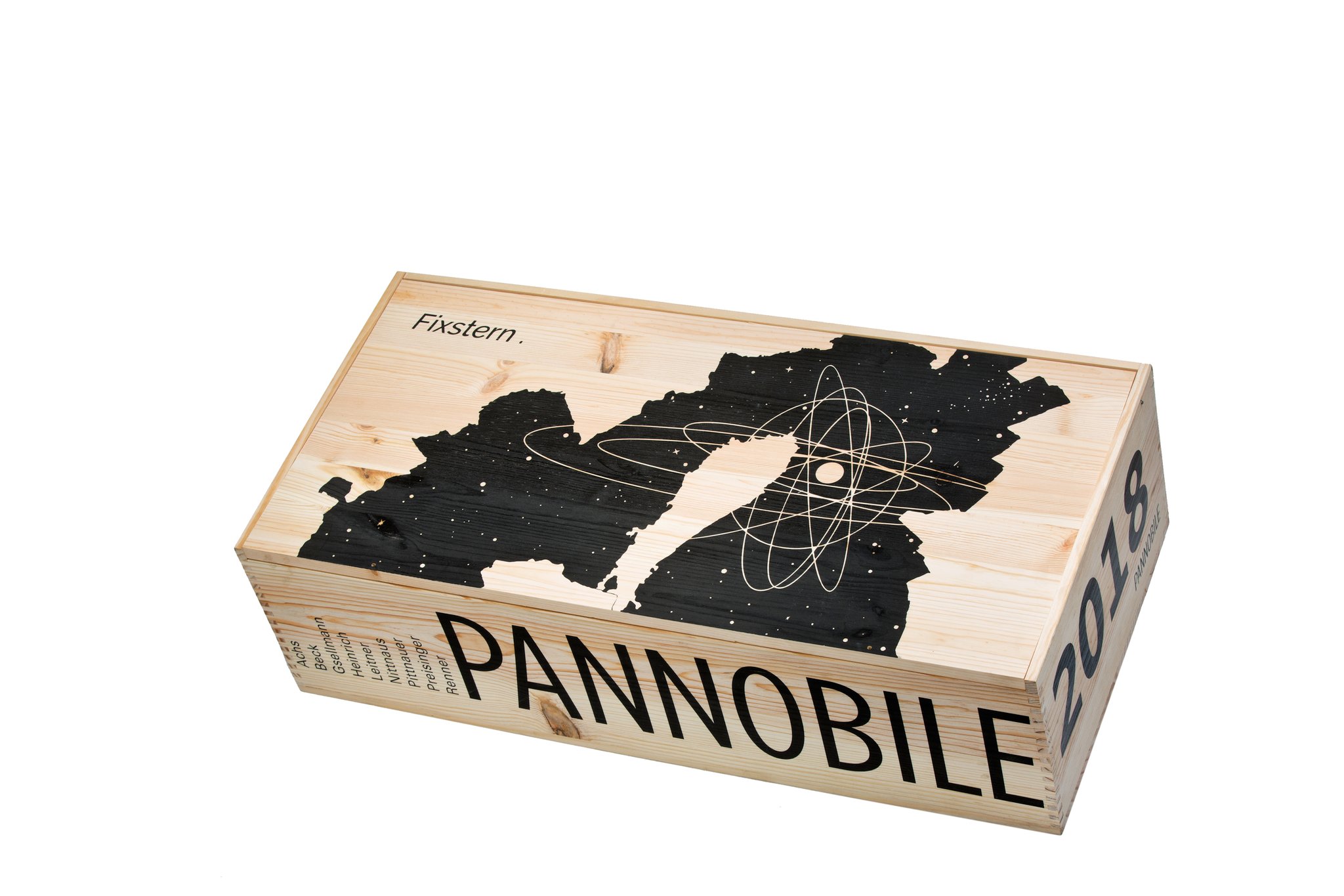 Wenn die roten PANNOBILES eines Jahrgangs abgefüllt sind, packen wir sie in die Kiste. In DIE 9er PANNOBILE Schmuckholzkiste.